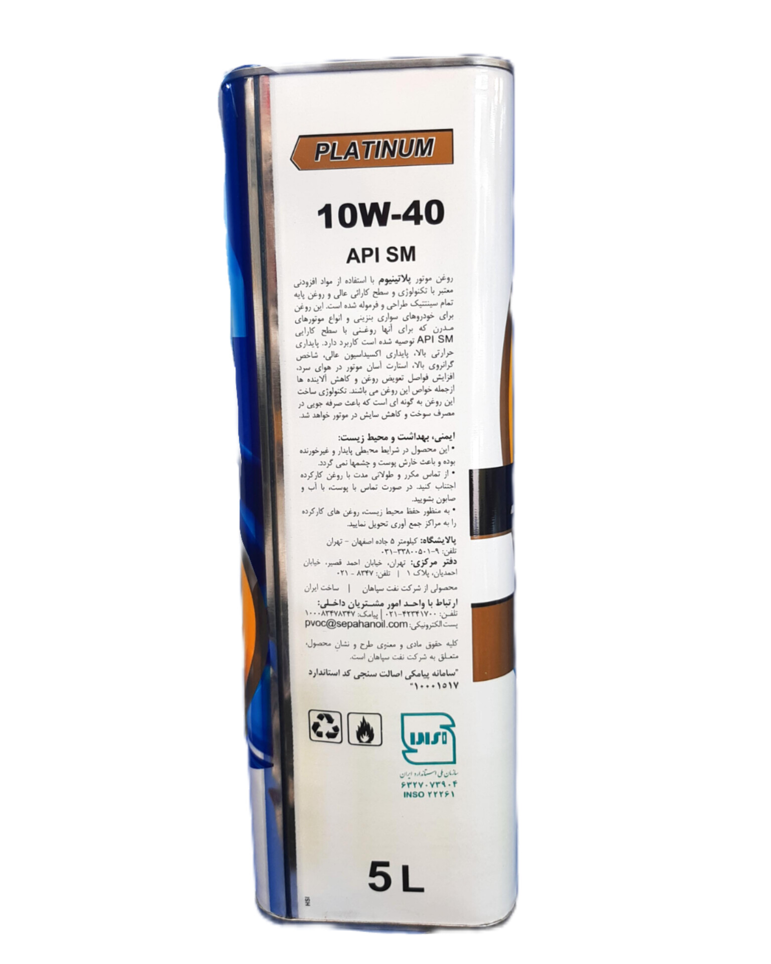 - روغن موتور اسپیدی پلاتینیوم ۱۰w40 پنج لیتری SM