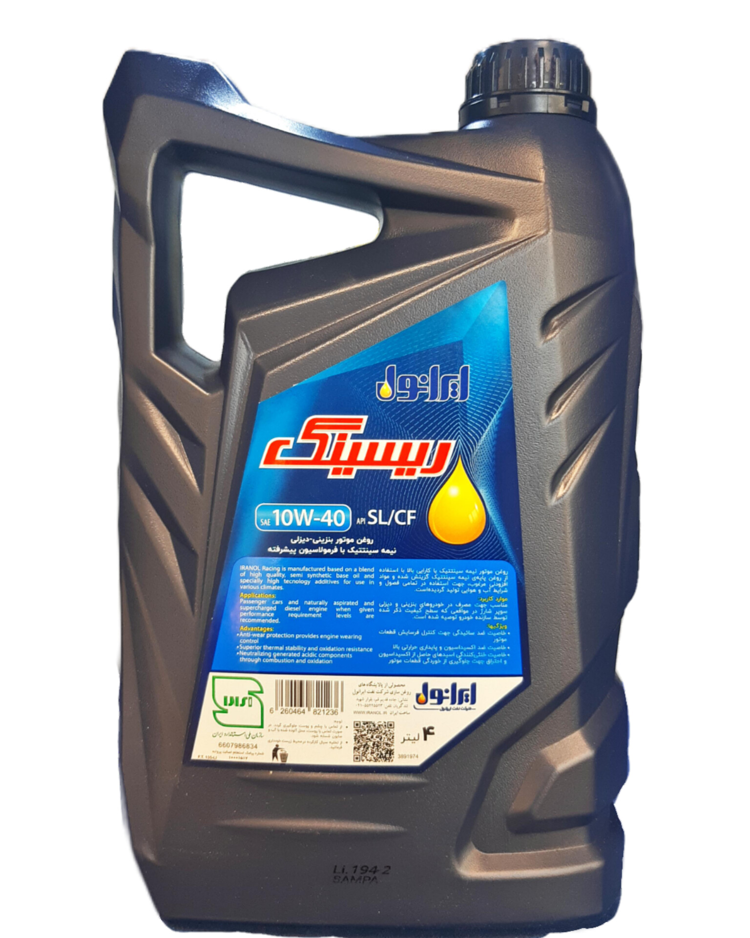 روغن موتور ایرانول ریسینگ ۱۰W40 (چهار لیتری) SL پلاستیکی