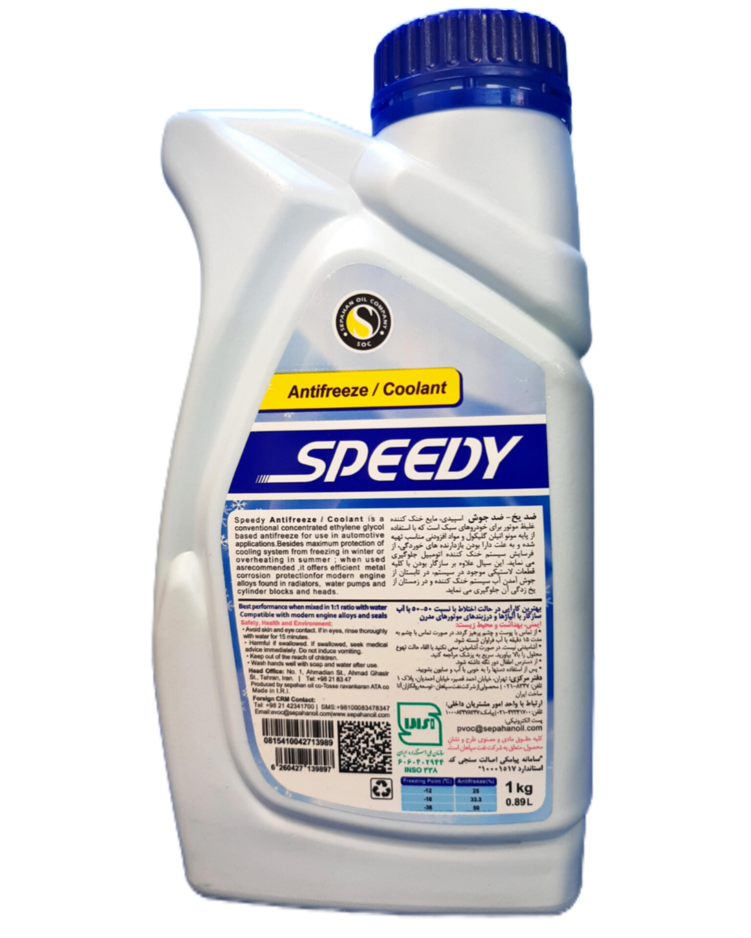 این ضدیخ بر پایهی اتیلن گلیکول و مواد افزودنی خاصی تولید شده که برای استفاده در سیستمهای خنککنندهی خودروهای بنزینی و دیزلی کاملاً مناسب است. یکی از ویژگیهای منحصربهفرد این محصول، سازگاری کامل آن با قطعات لاستیکی و تمامی واشرها است. این ویژگی باعث میشود که در اثر استفادهی طولانی مدت از ضدیخ اسپیدی، هیچ گونه آسیبی به قطعات داخلی سیستم خنککننده وارد نشود.
