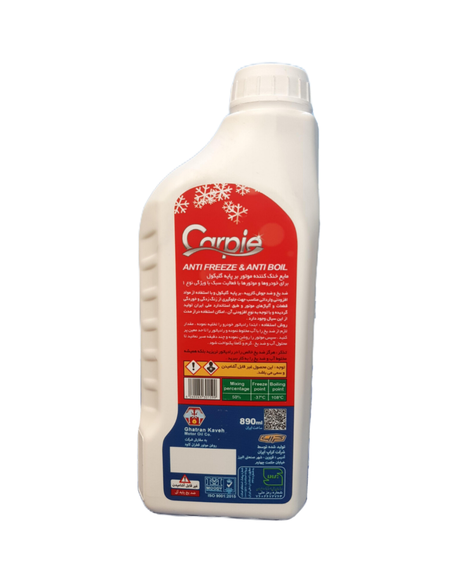 کولانت آماده مصرف کاسپین با فرمولاسیون پیشرفته OAT و بهره گیری از مواد آلی مطابق با استاندارد 338 ایران جهت استفاده در تمامی فصول برای کلیه خودروها تولید شده است. کولانت کاسپین در بهینه ترین نسبت ( 50 درصد حجمی) با آب دیونیزه ترکیب شده است تا رسوبات کم تری در سیستم خنک کننده موتور از خود برجای بگذارد.